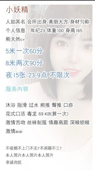 看着是一个新出来的美女,看着菜单不错各方面符合心中的要求,所以就去找了,到了以后房子挺干净,长的也 ...